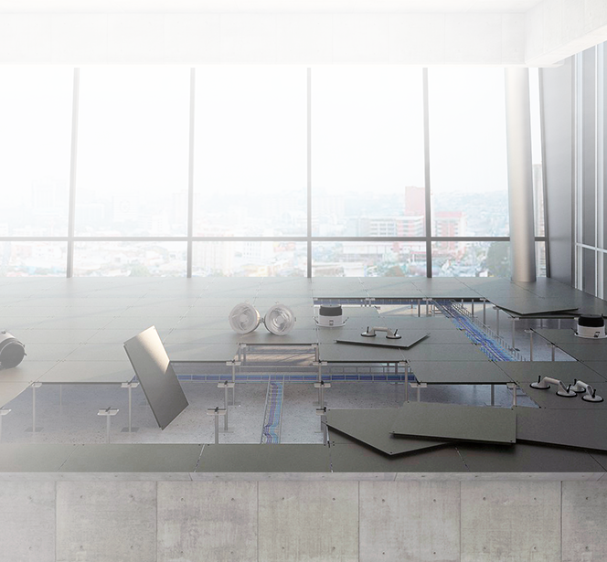 Los sistemas de Piso Elevado o Piso Falso nacen a raíz de la necesidad de ocultar el gran número de instalaciones (telefonía, electricidad, ventilación,etc) que aparecen en zonas de trabajo. Al mismo tiempo ofrece un acceso inmediato y sencillo al estar instalado a través de módulos que pueden retirarse fácilmente en caso de necesitar acceso para realizar alguna modificación o reparación