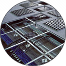 Cuenta con sistemas de plafón metálico, piso falso, fachadas exteriores, particiones, cubiertas de muro, y sistemas de piso, techo y puertas para áreas de seguridad, laboratorios y salas limpias.